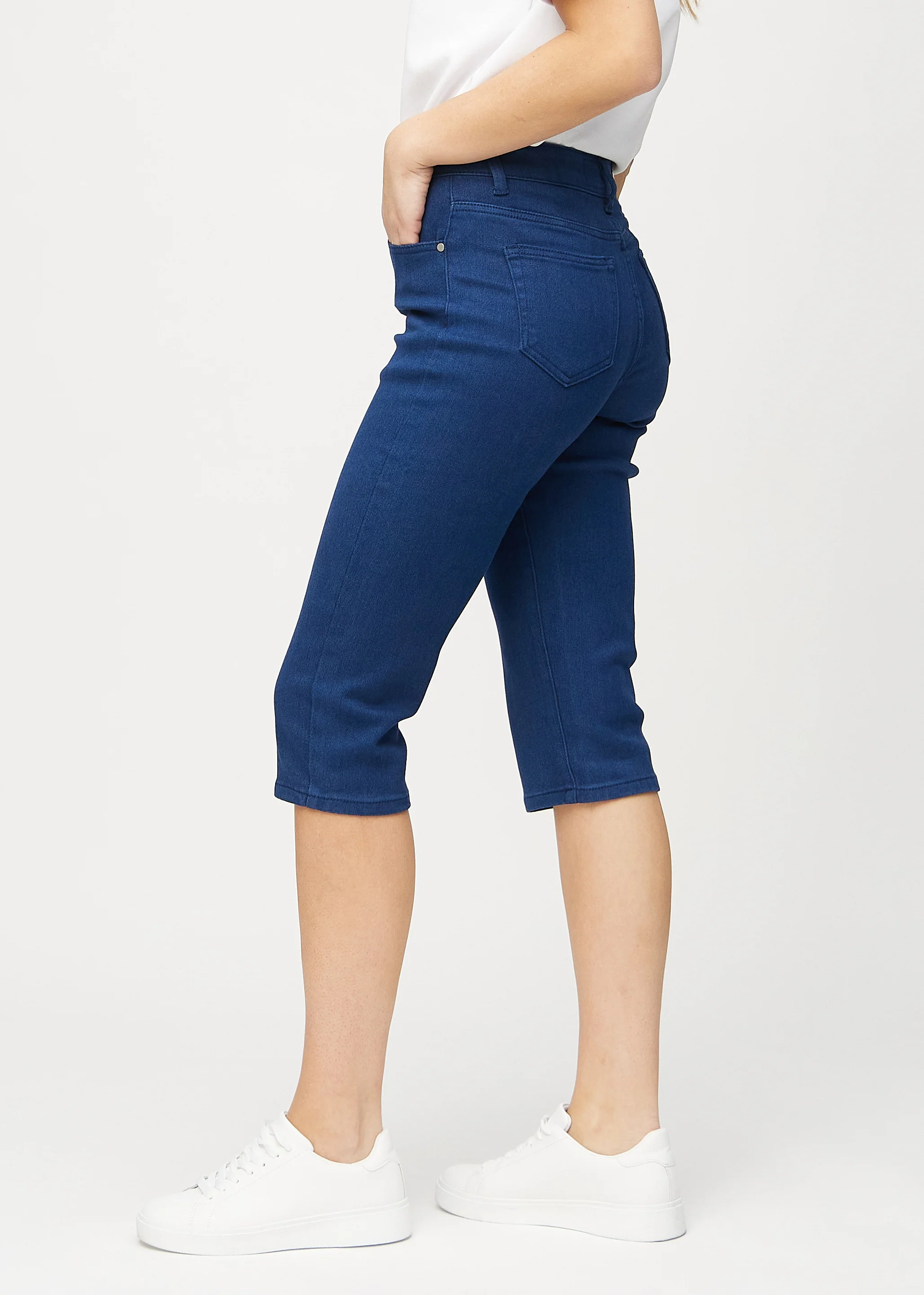Mit unseren Perfect Capris - Regular - Royals erhalten Sie bequeme dunkelblaue Capris für Damen. Unsere Regular Capris sind dehnbar und sorgen für besten Komfort im Alltag, sowohl in Ihrer Freizeit als auch bei der Arbeit. Dieses Modell endet knapp unter dem Knie, sitzt eng an den Hüften und ist locker um die Oberschenkel herum. Unsere Regular Capris sind darauf ausgelegt, langlebig zu sein und die Farbe sowie die Form auch nach dem Waschen und Tragen beizubehalten. Die schönen blauen Capris sind hoch tailliert und passen perfekt in jede Garderobe.